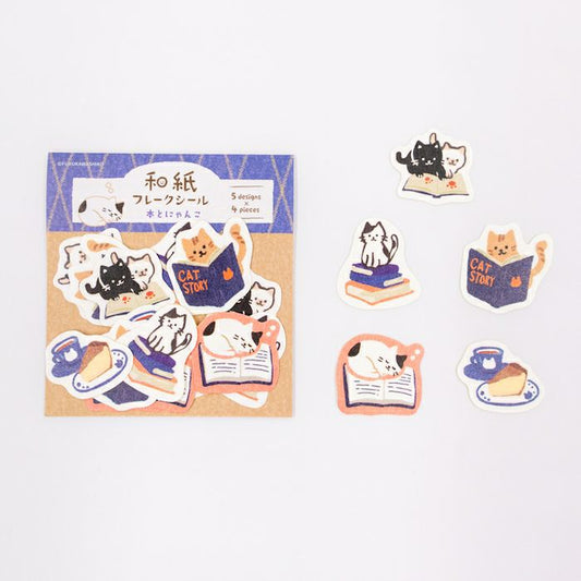 Furukawashiko Washi Flake Stickers - Book & Cat