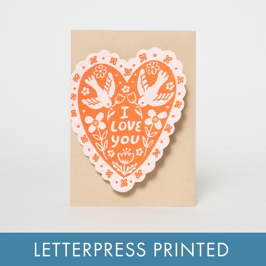 Egg Press Manufacturing - Phoebe Wahl Letterpress Greeting Card - Love Birds Heart