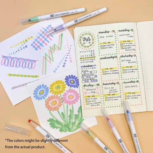 Kuretake - ZIG Clean Color Dot Marker - Dual Tips - 6 Color Set