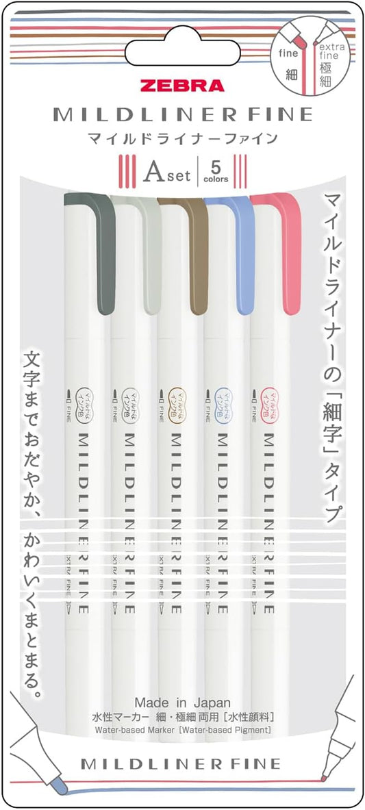 Zebra Mildliner Fine Highlighter 5 Color Set - Set A
