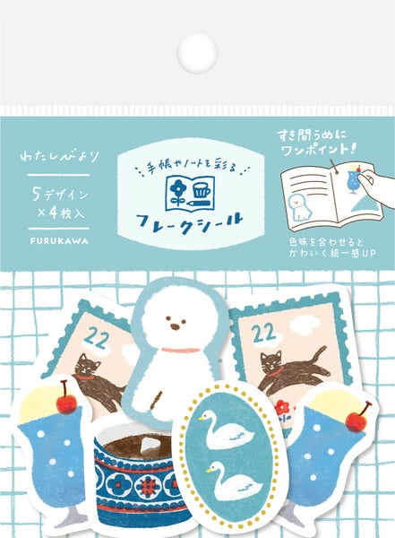 Furukawashiko Watashi-Biyori Washi Flake Stickers - Blue