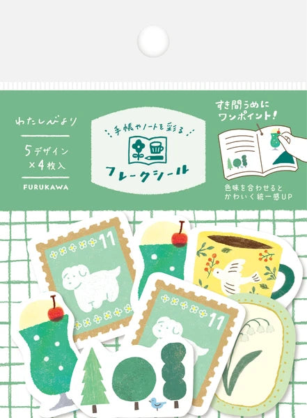 Furukawashiko Watashi-Biyori Washi Flake Stickers - Green