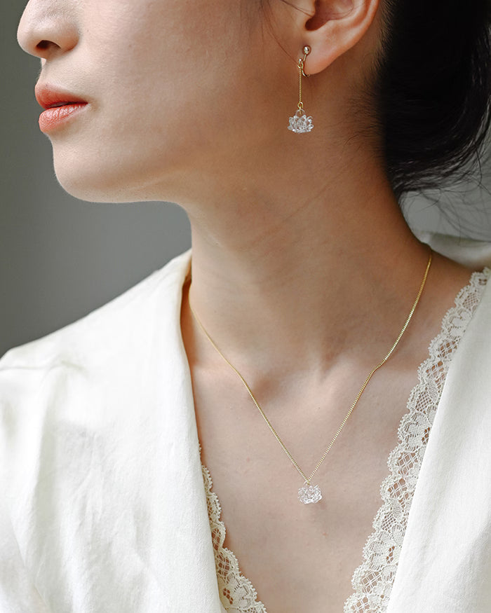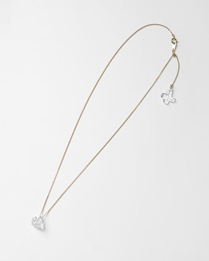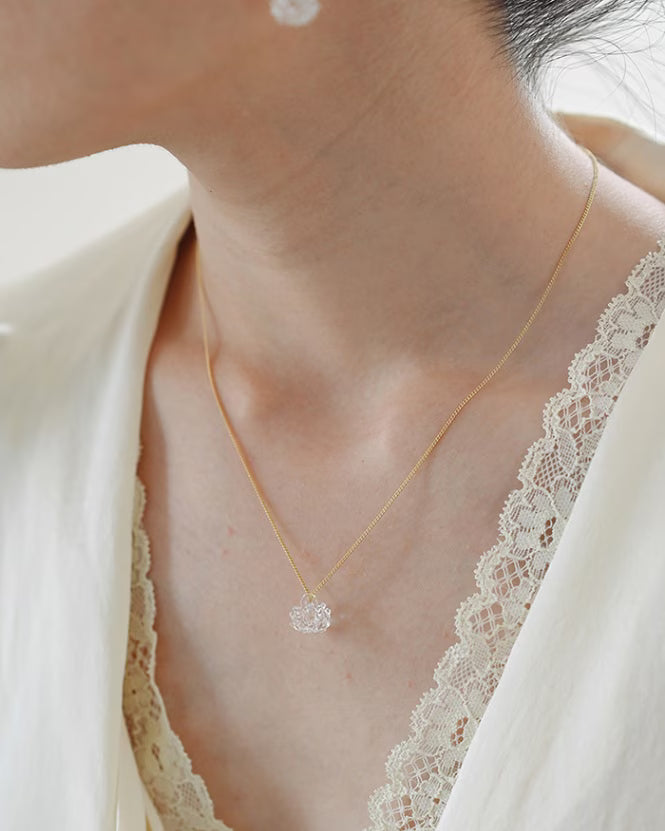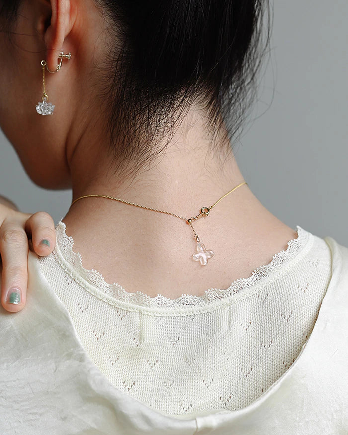 Add a touch of charm and luck to your look with this glass necklace. The front features a delicate white clover flower that shines gently on the chest, while the back showcases a four-leaf clover, bringing a subtle, lucky detail to the design.