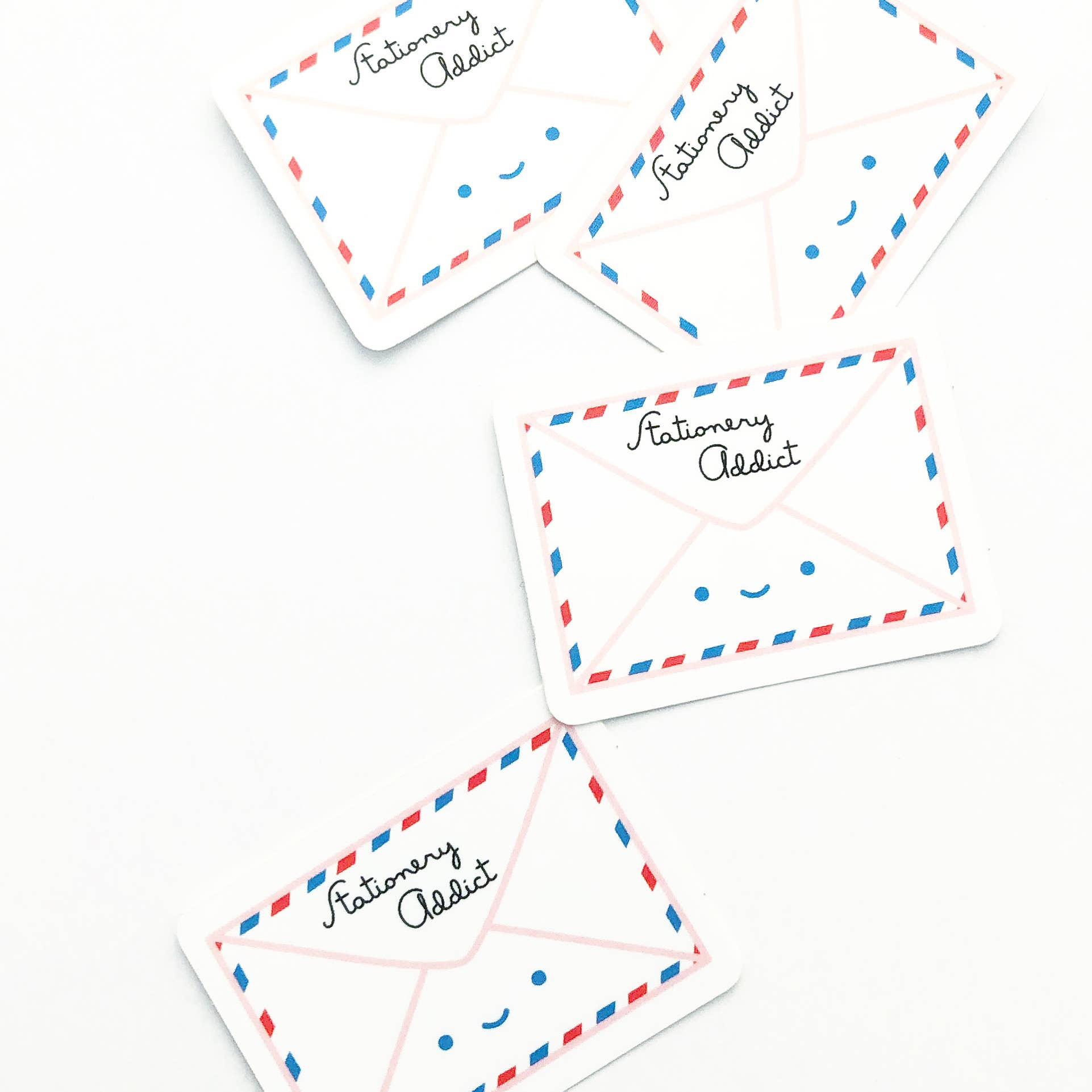 Set of 3 stickers - 1 Cosmic Mailbox, 1 Stationery Addict Envelope, and 1 Stationery Lover Envelope