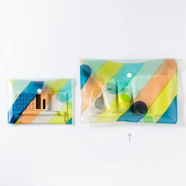 The Iroha Juice Flat Pouch is a versatile and convenient flat case made of durable vinyl, perfect for carrying and organizing small items. Its transparent design lets you see what’s inside at a glance, making it easy to find what you need.
