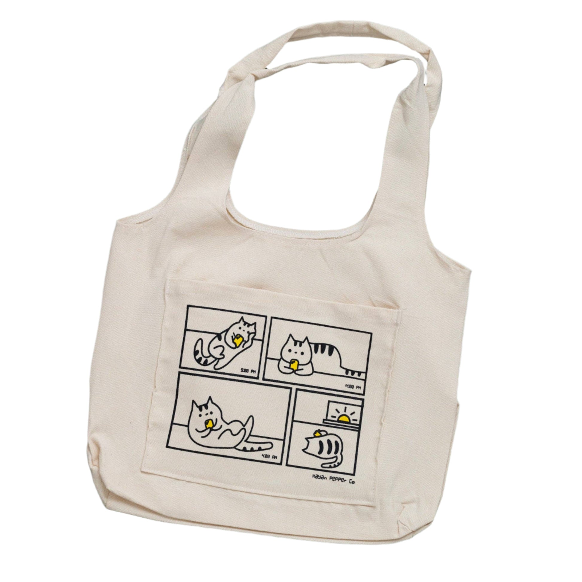 Kayan Pepper Co. - Doom Scrolling Cat - Screen Printed Heavy Canvas Tote Bag