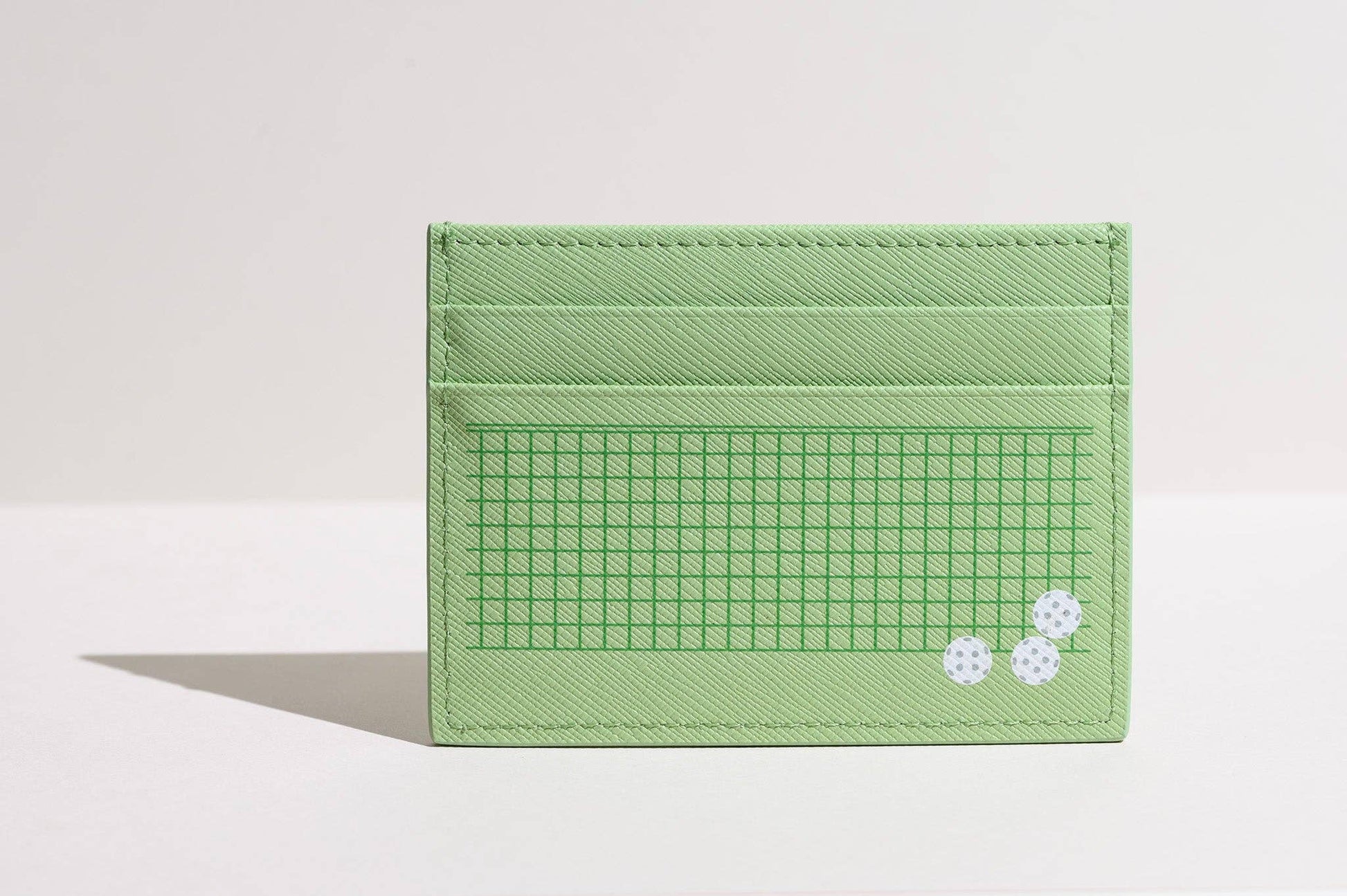Represent LA's finest (fictional) pickleball club with this card holder! Textured Saffiano leather Light green pigment with matching painted edge 5 card slots