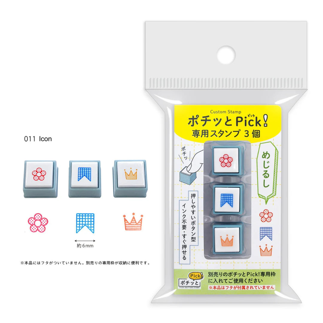 Customize your planner with ease using the Pochitto Pick Push-Button Stamp! With just a press, you can add fun icons and decorations—no ink pad needed. Simply position the stamp where you want the design, press down, and you’re done. Each stamp features an image showing its ink color, and the waterproof ink allows you to safely color over the marks with water-based pens or markers.