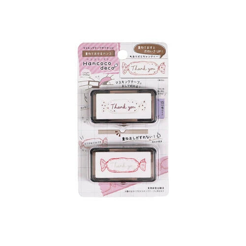 The Kutsuwa Hancoco Deco Stamp lets you create adorable layered stamp designs, perfect for decorating washi tape, letters, planners, sticky notes, and more. It features a built-in serrated edge that cuts stamped masking tape to a tidy 5 cm width and helps center your designs on notes. Fun and functional, this unique stamp adds a charming, creative flair to any paper project.