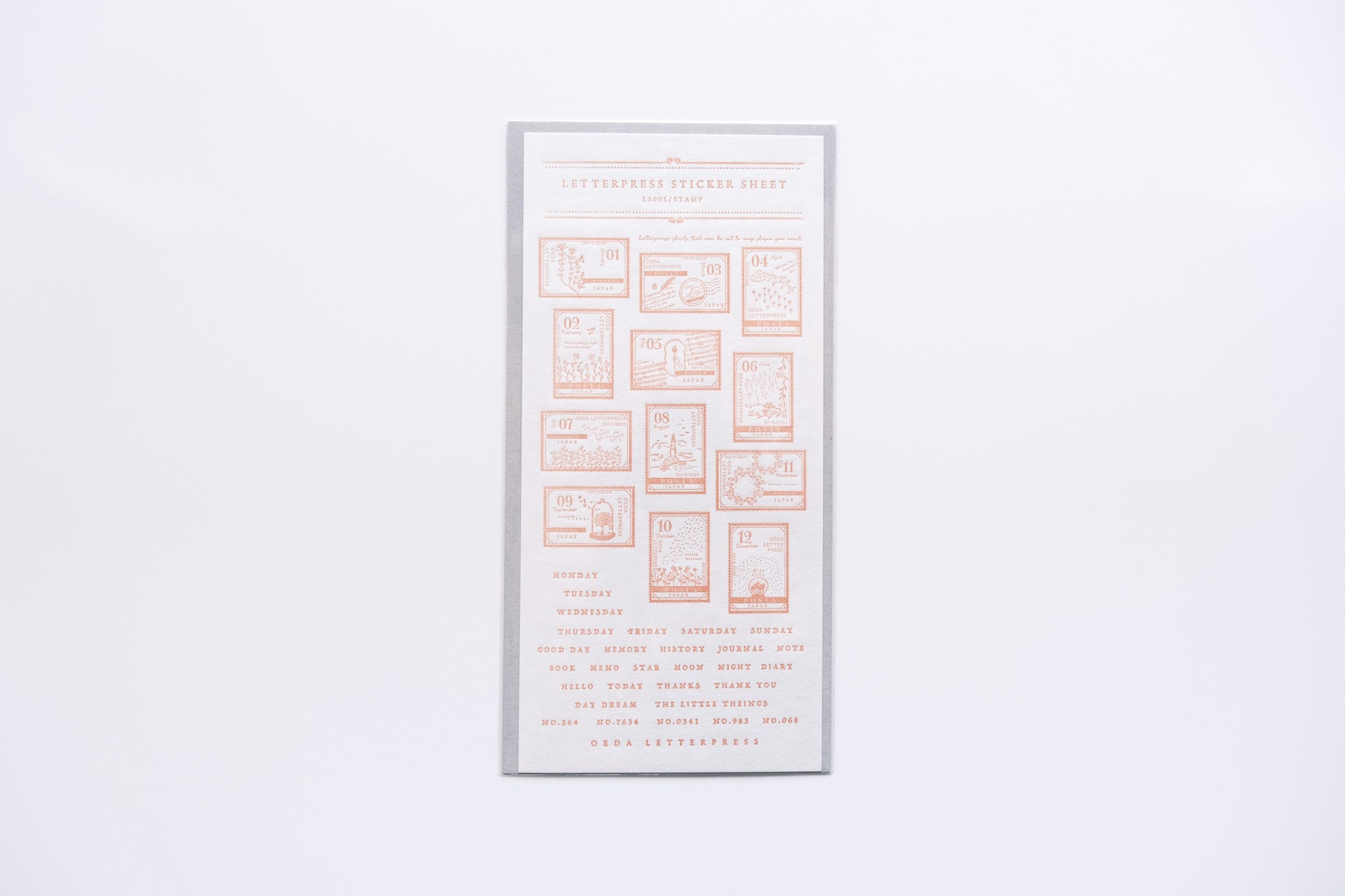 This is a sheet type LETTERPRESS sticker, designed with various texts of postage stamps. The sheet type stickers can be cut out and pasted directly on the surface. The stickers are thick enough to be used as stickers, so they have a strong presence in collages and decorations.