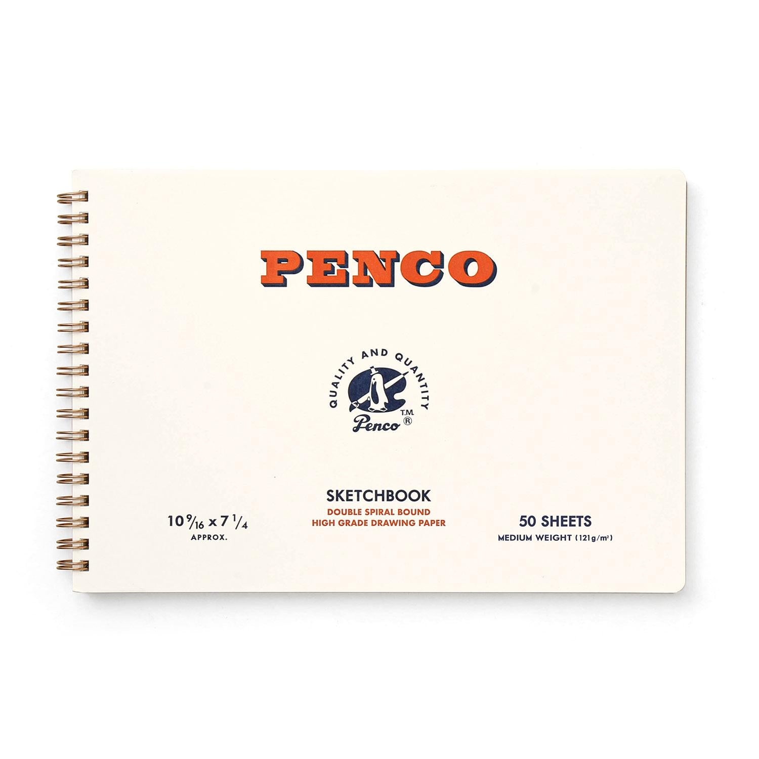 The drawing paper, "HS Gaou," is suitable for watercolor and crayon. Each size offers both Medium and Heavy paper thickness options. The cover features Penco's signature design with two-color letterpress printing. The back cover is made of thick board, making it easy to draw even when holding the sketchbook in your hand.