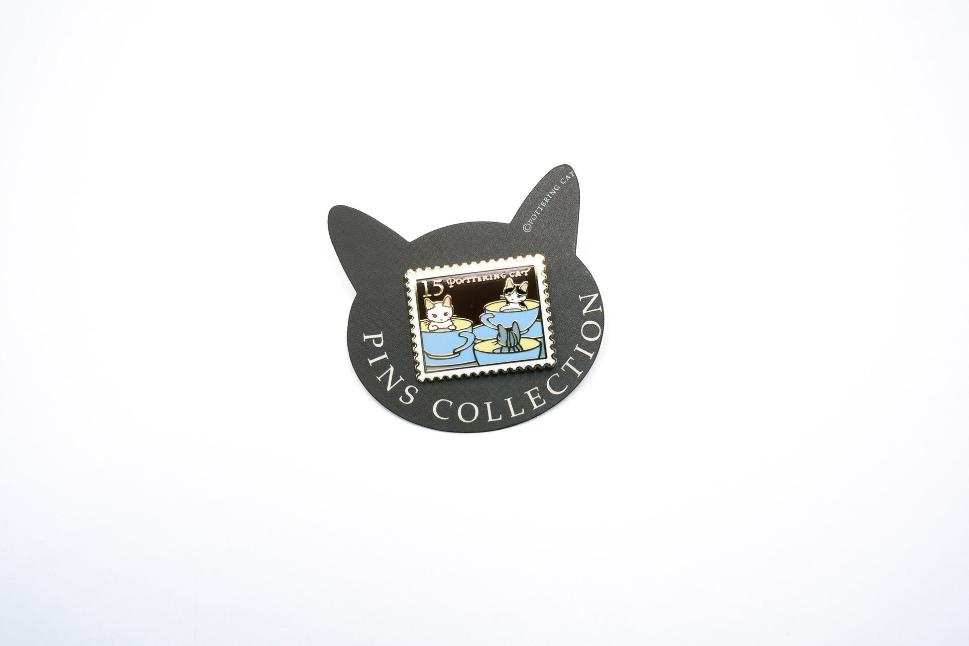 Pottering Cat Enamel Pin - Rotating Coffee