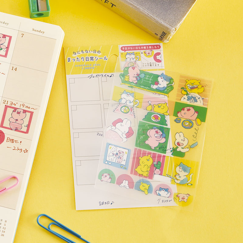 Add a playful touch to your planner with these stickers, designed to brighten up blank date pages! It includes two sheets of the same design, connected by perforations so they stay together and are easy to carry around on the go.