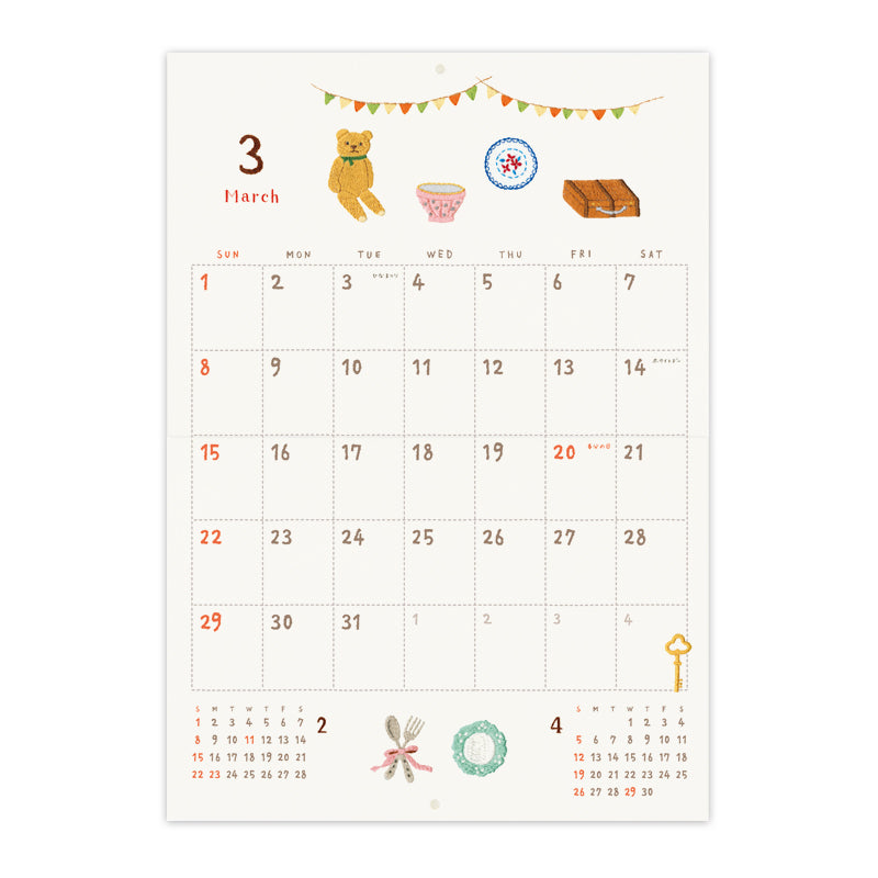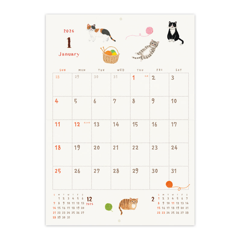 Celebrate everyday moments with this beautifully embroidered calendar by Yoko Fujiki. Each motif is stitched with care and warmth, capturing scenes from daily life with intricate attention to detail—the more you look, the more you’ll fall in love. This wall-mounted calendar spans 13 months, from January 2026 to January 2027.