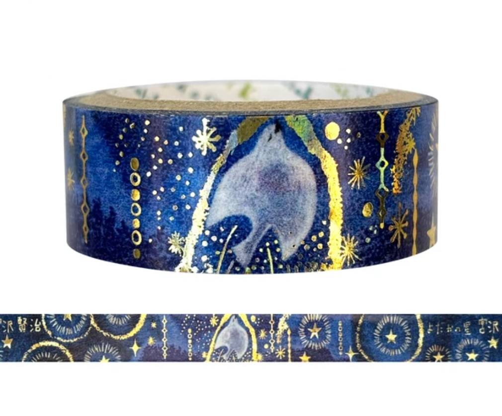 The world of Kenji Miyazawa's masterpieces is brought to life by general goods designer and picture book author Shinzi Katoh. This masking tape is adorned with gold hologram foil, giving it a luminous, enchanting finish.