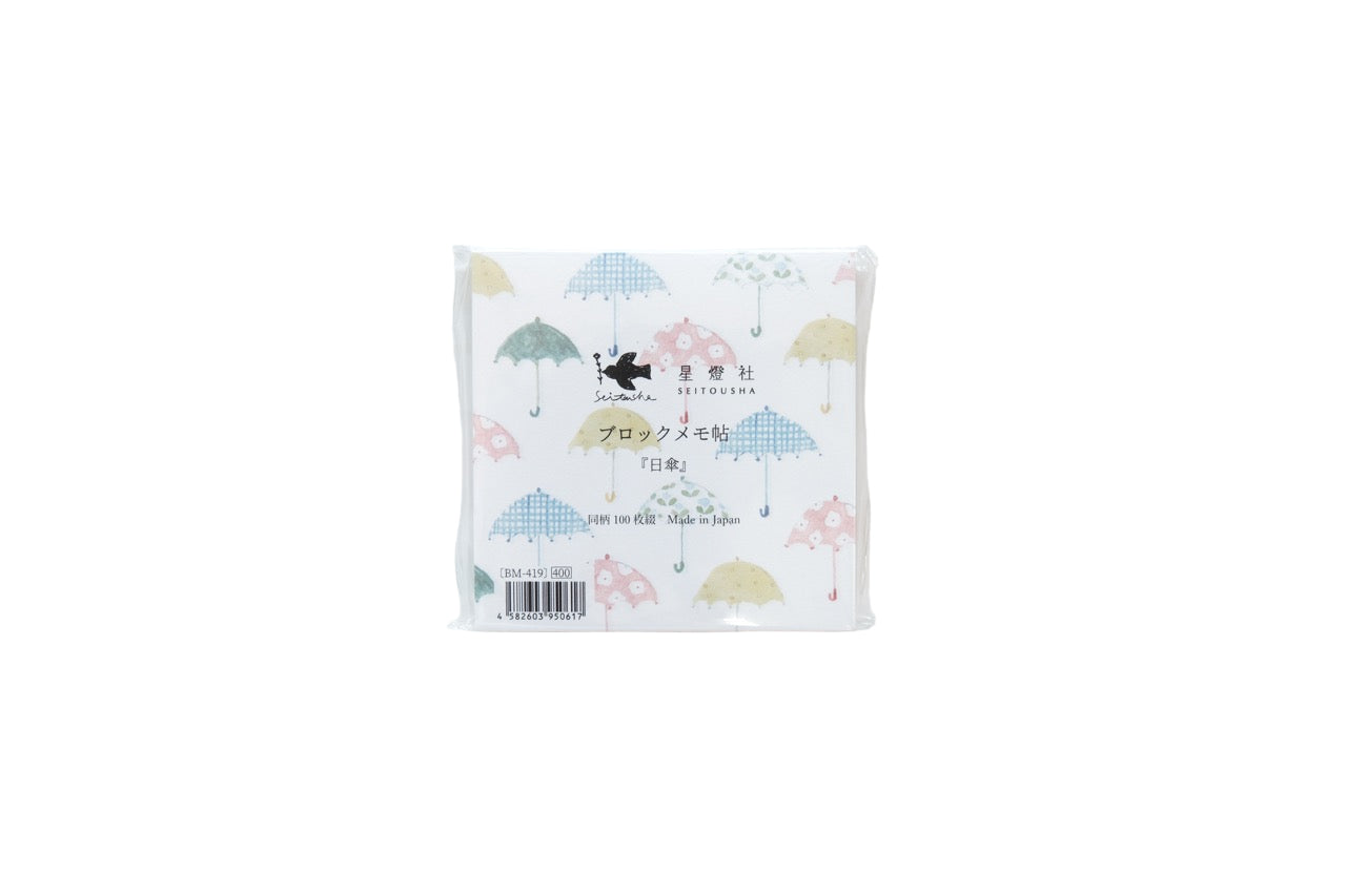 Part of Seitousha’s classic collection, this block memo pad features a charming hand-drawn parasol umbrella design. With 100 sheets and a slightly smaller size, it fits perfectly in your palm—ideal for jotting down quick notes on the go or adding a playful touch to your desk.