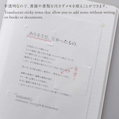 These 50mm Stalogy Translucent Sticky Notes are made from sturdy, tear-resistant film that holds up to frequent use. Their translucent design lets you see any underlying text, making them perfect for annotating documents, marking pages, or adding notes without covering important information.