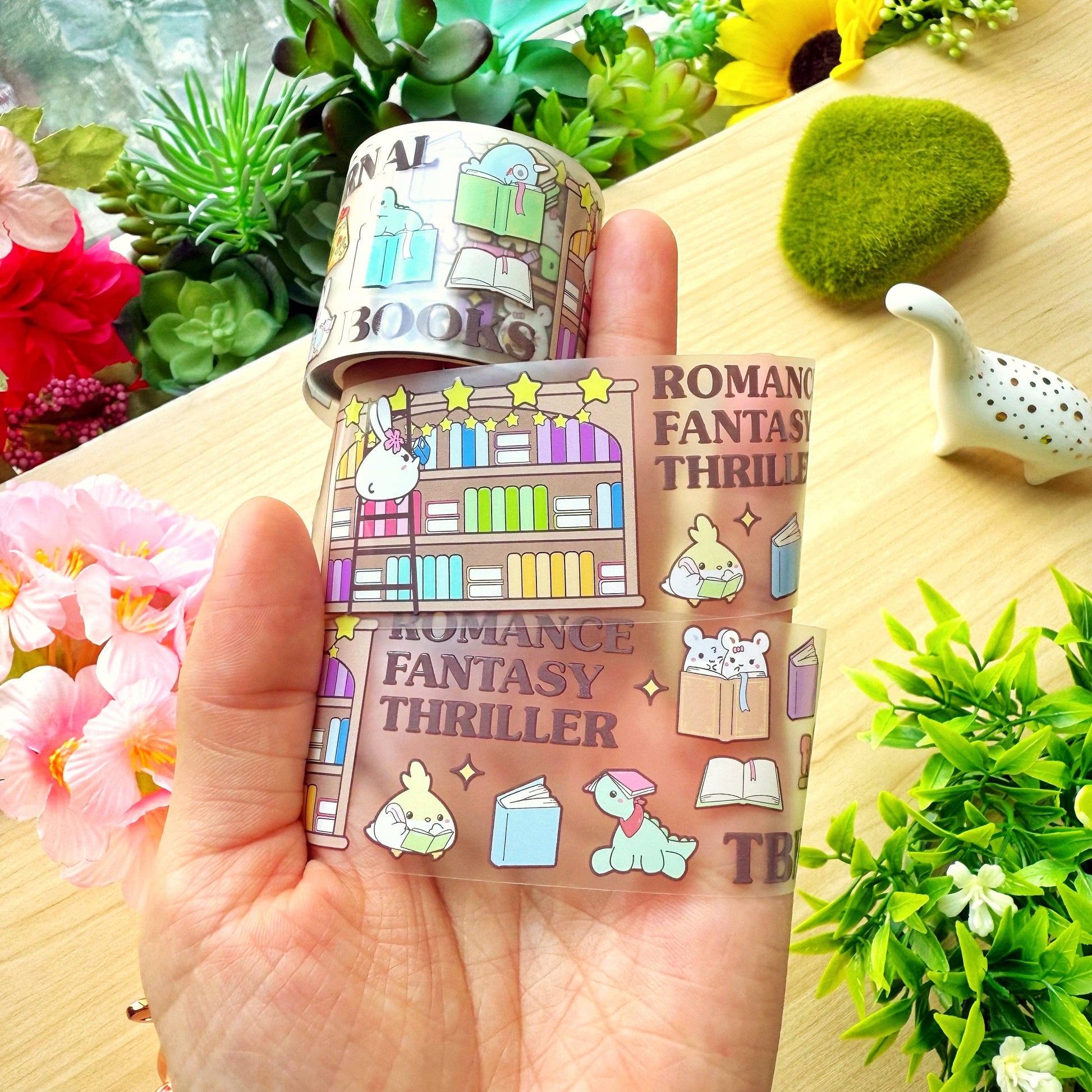 The "In The Library" PET clear tape is a perfect addition to decorating scrapbooks, journals, notebooks, or even accessories such as cables and phone cases! Printed on PET, this transparent tape is designed to be easily removable and leave no sticky residue.