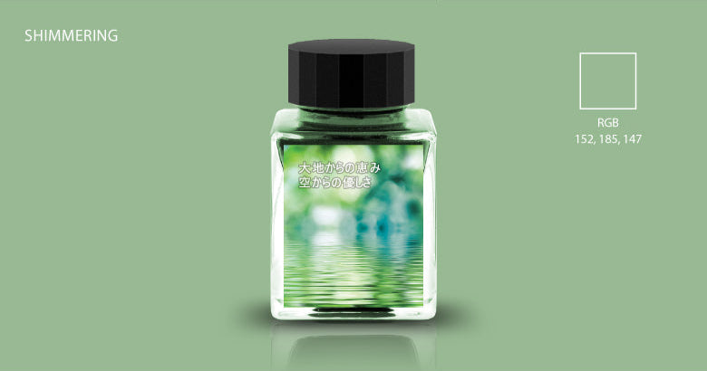 Part of the Puddle storyline, 大地からの恵み 空からの優しさ (“Blessings from the earth, kindness from the sky”), this ink features a rich green tone that evokes nature’s serenity. Its versatile shading allows for a wide range of expressions, from soft, gentle strokes to deeper, more vibrant hues - perfect for bringing a touch of natural elegance to your writing or creative projects.